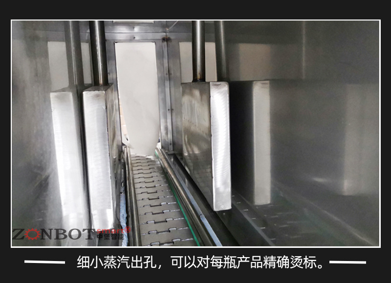 先將產(chǎn)品用熱收縮膜包裹,然后送入蒸汽收縮機(jī)的收縮通道。機(jī)器通過(guò)加熱器加熱水產(chǎn)生蒸汽,蒸汽經(jīng)噴頭均勻噴灑在包裝薄膜上,薄膜在高溫蒸汽作用下收縮,緊密貼合產(chǎn)品,最后通風(fēng)口排出蒸汽,產(chǎn)品冷卻定型。