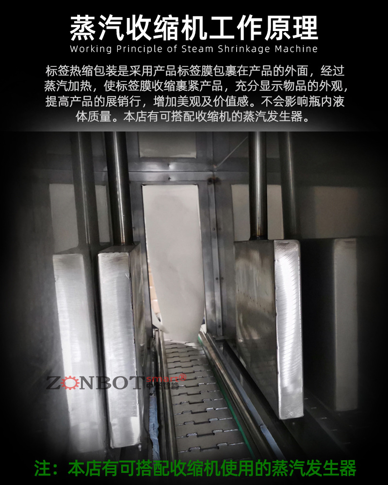 又如,在對圓柱形的飲料瓶進(jìn)行包裝時,蒸汽會環(huán)繞瓶身,使收縮膜均勻收縮,緊緊包裹住瓶體。
