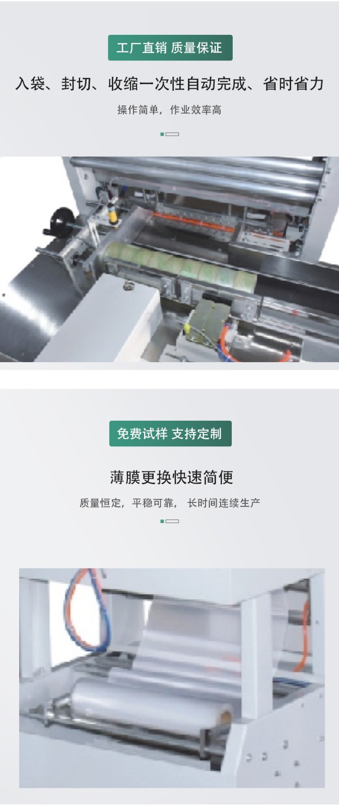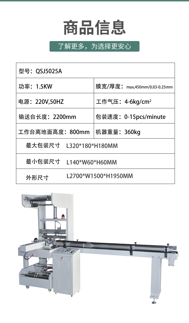 • 功率:機(jī)器運(yùn)行所需的電功率,一般在 3 - 8kW 之間。功率大小與機(jī)器的包裝速度、加熱封口裝置、電機(jī)功率等因素有關(guān)。