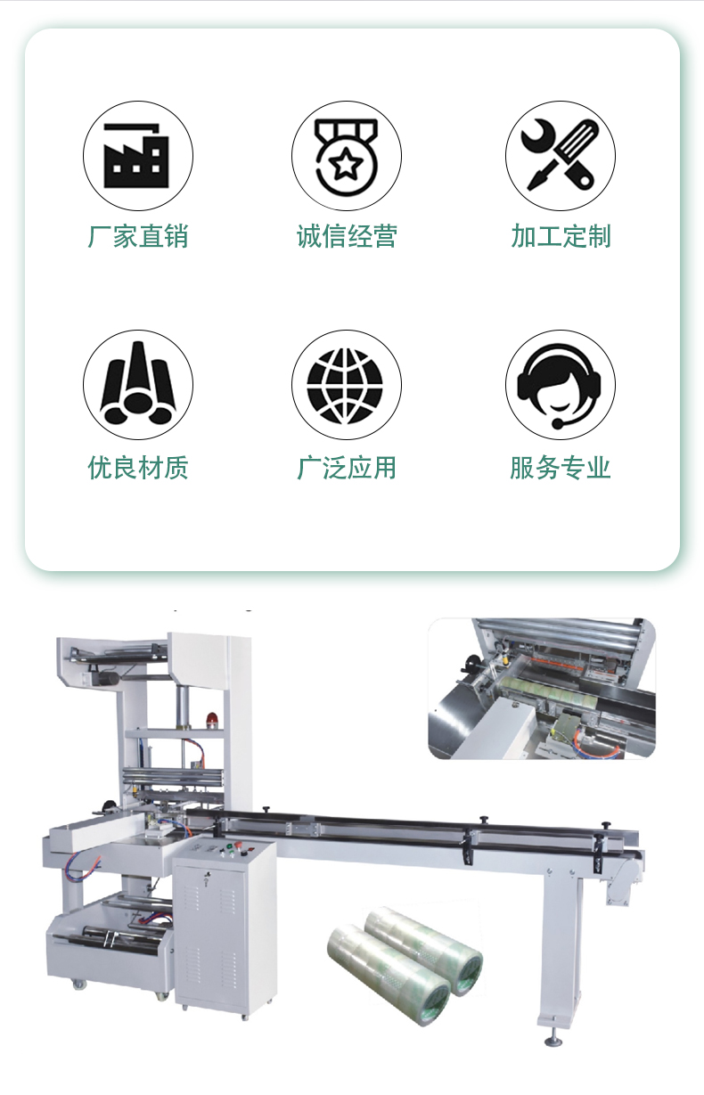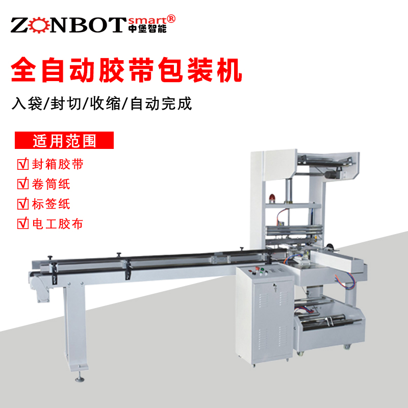 全自動(dòng)膠帶包裝機(jī)是一種高效自動(dòng)化設(shè)備,用于膠帶產(chǎn)品的包裝。它能自動(dòng)完成多道包裝工序,將膠帶卷包裝成符合市場(chǎng)銷(xiāo)售和運(yùn)輸要求的成品。這種設(shè)備集成了機(jī)械、電氣、氣動(dòng)等多種技術(shù),通過(guò)精確的控制系統(tǒng)協(xié)調(diào)各部分工作,大大提高了膠帶包裝的生產(chǎn)效率和包裝質(zhì)量。 工作流程 進(jìn)料:首先通過(guò)進(jìn)料裝置將膠帶卷有序地輸送到包裝區(qū)域。進(jìn)料裝置一般有輸送帶,能夠穩(wěn)定地把膠帶卷按照一定的間距逐個(gè)傳送,確保膠帶卷能準(zhǔn)確進(jìn)入下一個(gè)包裝環(huán)節(jié)。 裹包:在包裝區(qū)域,包裝材料(通常是塑料薄膜)會(huì)被展開(kāi)并圍繞膠帶卷進(jìn)行包裹。這一過(guò)程是通過(guò)機(jī)械結(jié)構(gòu)來(lái)實(shí)