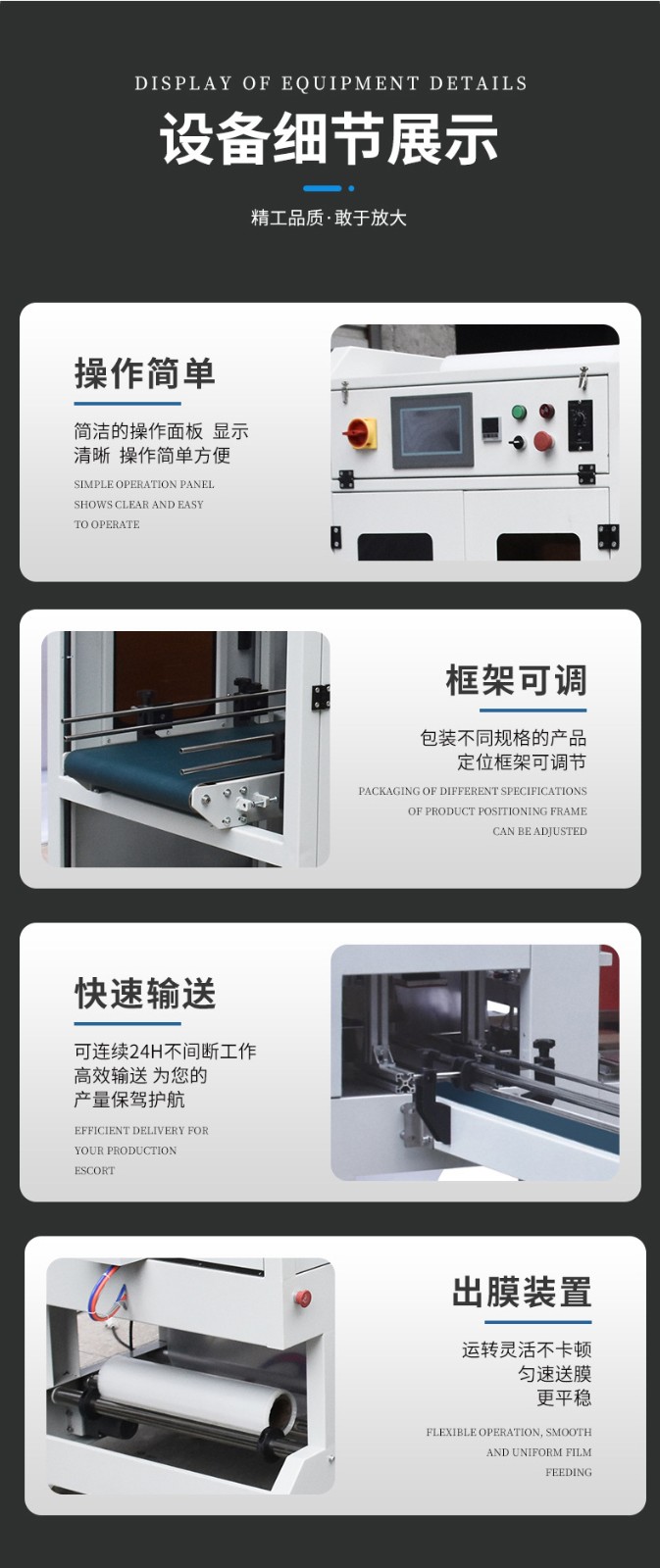 • 適應(yīng)性與靈活性:這種包裝機(jī)對產(chǎn)品的形狀、尺寸和包裝材料的適應(yīng)性較強(qiáng)。它可以通過簡單地調(diào)整機(jī)器參數(shù)來包裝各種形狀(如正方體、長方體、圓柱體甚至不規(guī)則形狀)和不同尺寸的產(chǎn)品。同時(shí),它能夠兼容多種包裝材料,包括不同厚度、材質(zhì)的塑料薄膜等。相比一些專用包裝機(jī),它的靈活性更高,能夠滿足企業(yè)多樣化的包裝需求。