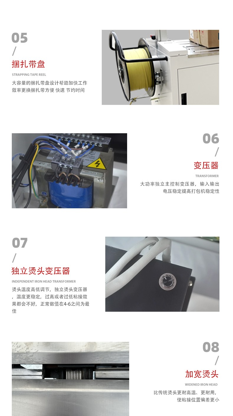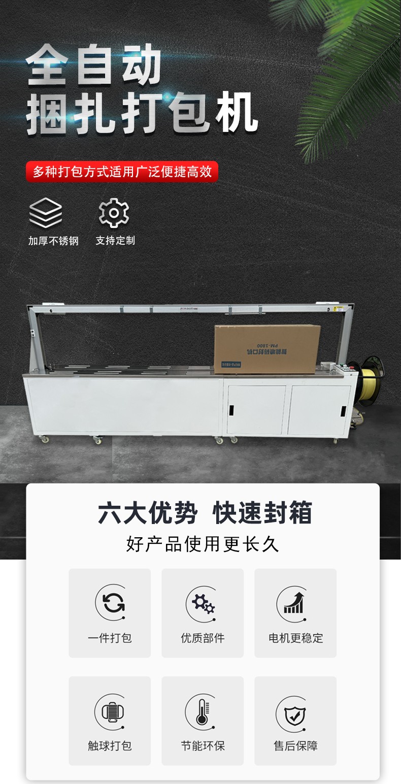 • 能夠精確控制打包帶的使用長度,避免了人工打包時可能出現(xiàn)的打包帶浪費現(xiàn)象,節(jié)約了包裝材料成本。