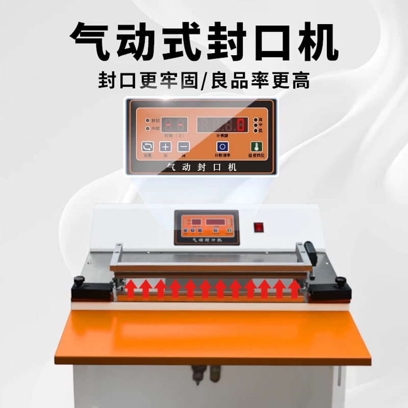 - 氣動封口:利用壓縮空氣驅(qū)動氣缸,帶動封口部件運作。電器脈沖技術(shù)使發(fā)熱元件發(fā)熱,在熱量和壓力共同作用下,實現(xiàn)包裝材料的封口。