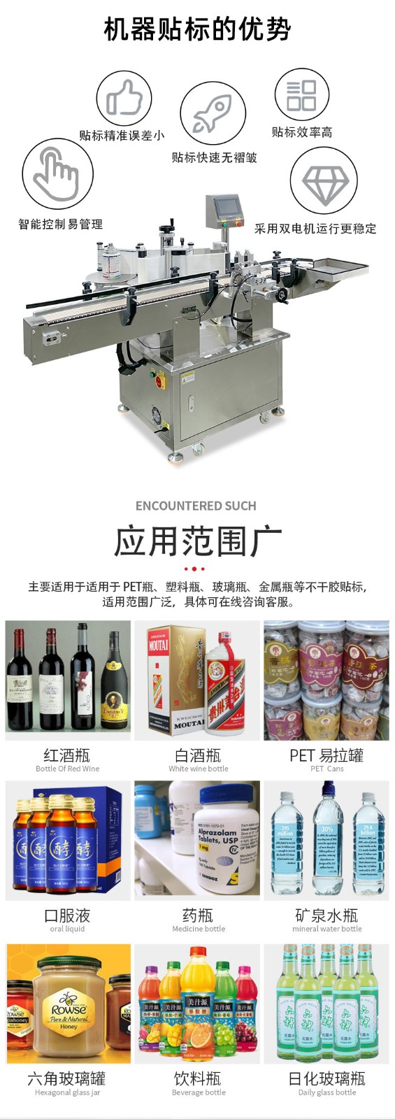 塑料瓶玻璃瓶不干膠定位打碼貼標機 全自動圓瓶貼標機立式可移動藥瓶貼標簽機