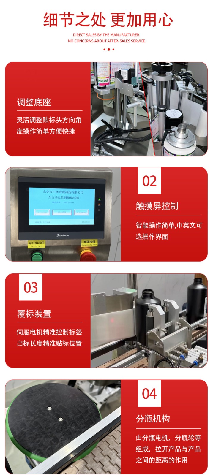 • 出瓶:完成貼標和打碼的圓瓶從輸送帶的出料端送出,進入下一道生產(chǎn)工序或成品收集區(qū)。