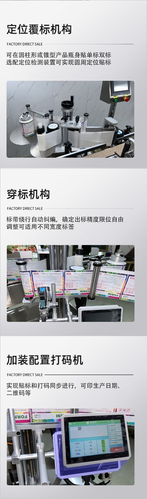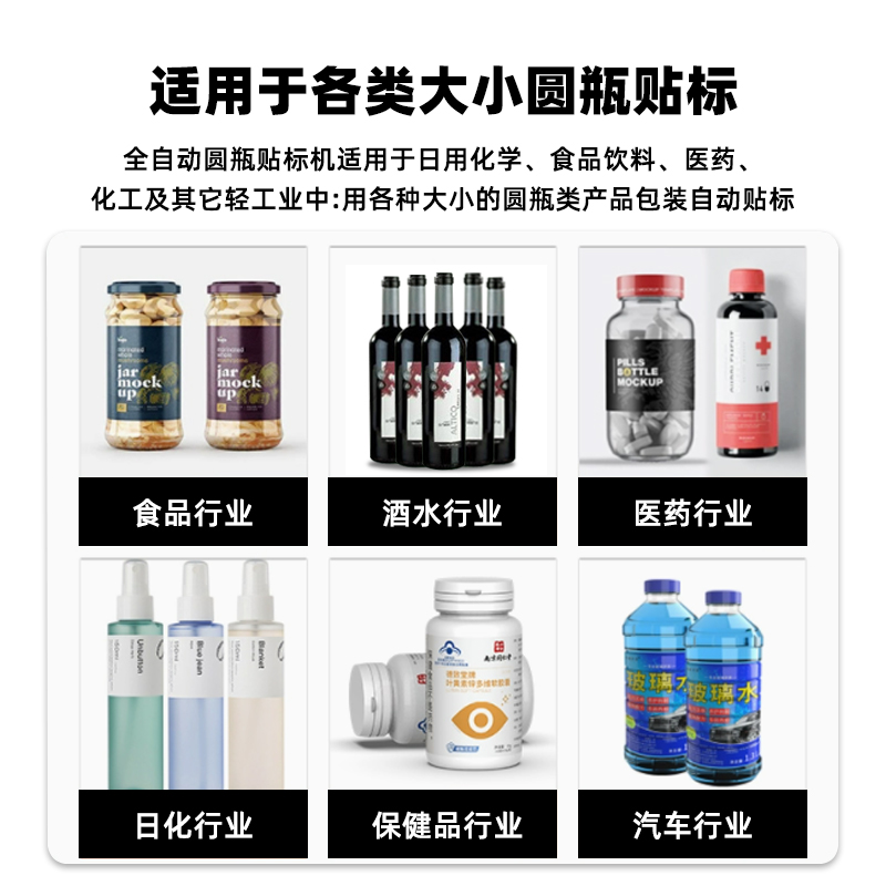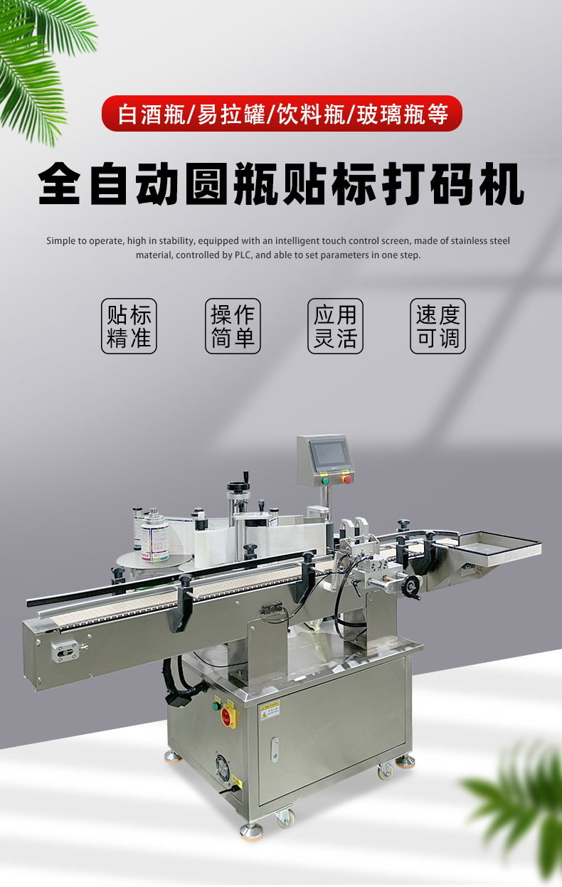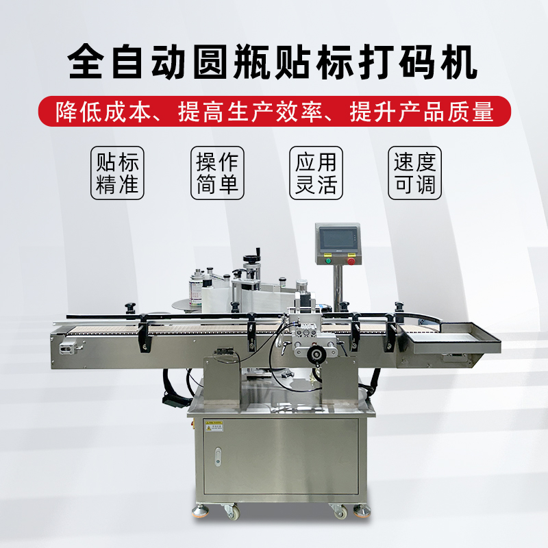 全自動圓瓶貼標打碼機是一種集貼標和打碼功能于一體的自動化設(shè)備,廣泛應(yīng)用于食品、醫(yī)藥、日化等行業(yè)。 以下是其詳細介紹: 功能特點 貼標功能:可在圓瓶的圓周面、圓錐面、雙側(cè)面等位置進行貼標,可貼單標或雙標,正背雙標間距可靈活調(diào)整。 打碼功能:可在標簽上打印生產(chǎn)日期、批號、有效期、條形碼、二維碼等信息,滿足不同行業(yè)的標識需求。 自動化程度高:采用先進的傳感器和控制系統(tǒng),可實現(xiàn)自動送瓶、貼標、打碼、收瓶等功能,無需人工干預(yù),提高生產(chǎn)效率和貼標質(zhì)量。 適應(yīng)性強:可適應(yīng)不同規(guī)格、形狀的圓瓶,通過調(diào)整設(shè)備的參數(shù)和更換相