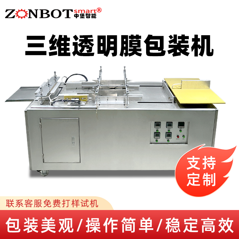 設(shè)備通過 “膜料預(yù)處理→人工上料定位→三維裹膜成型→熱封切邊→折邊定型→成品輸出” 的流程,實(shí)現(xiàn)產(chǎn)品的立體包裝,具體步驟拆解如下: