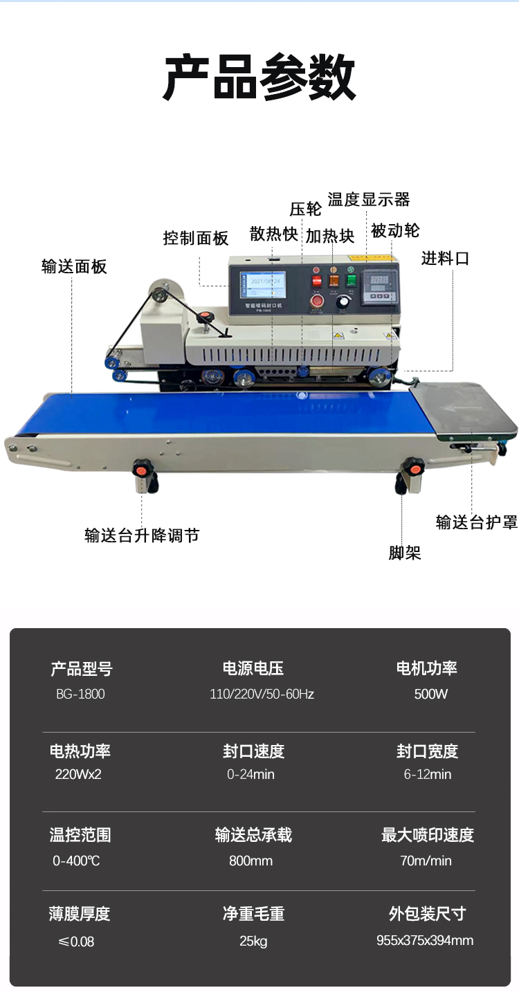 ZB-1800商用智能噴碼封口一體機噴碼打印日期茶葉食品外包裝