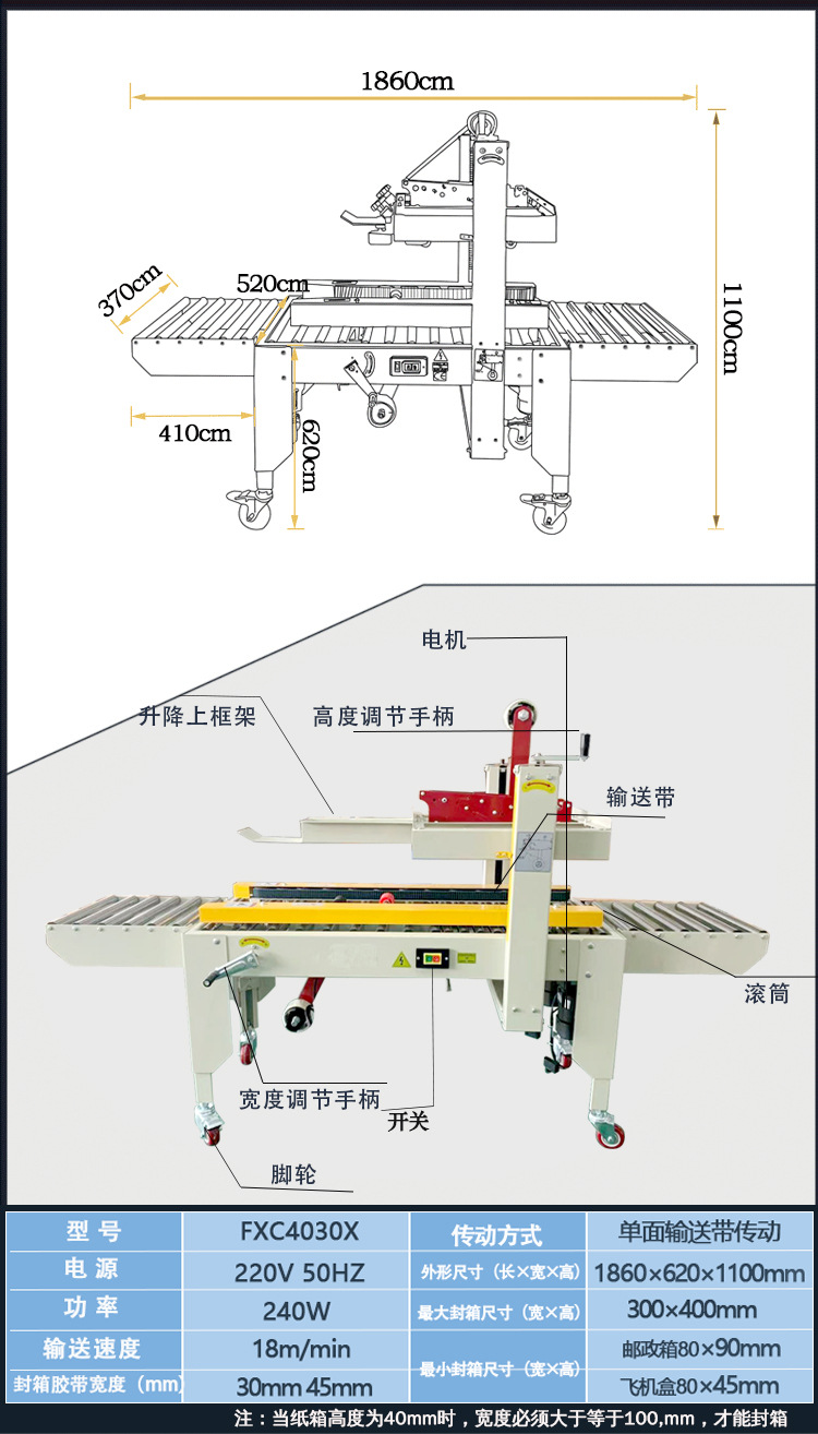 FXC4030X-飛機(jī)盒牛皮紙膠帶封箱機(jī) 自動封口機(jī) 封箱器設(shè)備封箱打包器