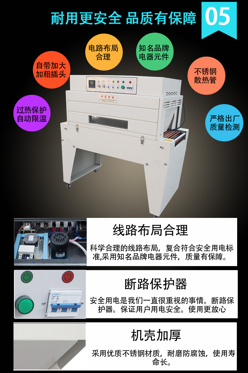 熱收縮機(jī)采用的進(jìn)口材料,保證了產(chǎn)品的質(zhì)量和性能,使您的產(chǎn)品在收縮包裝后,更耐用、更美觀,更具市場競爭力。