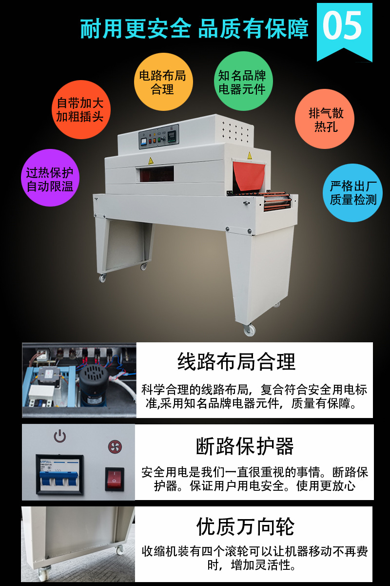 熱收縮機采用的進口材料,保證了產(chǎn)品的質(zhì)量和性能,使您的產(chǎn)品在收縮包裝后,更耐用、更美觀,更具市場競爭力。