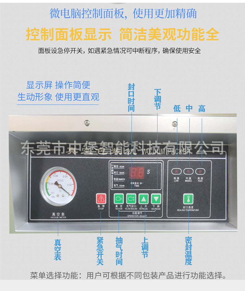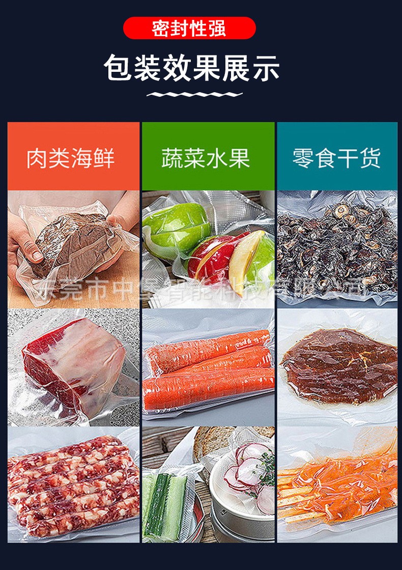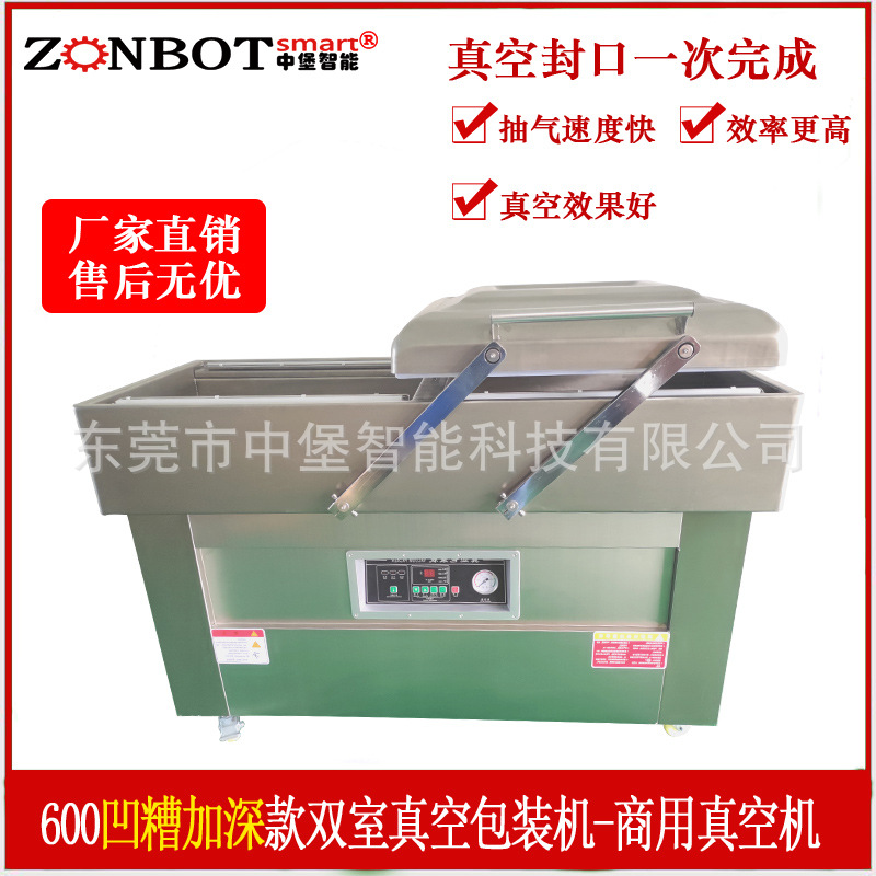 真空包裝機能夠自動抽出包裝袋內的空氣,達到預定真空度后完成封口工序。亦可再充入氮氣或其它混合氣體,然后完成封口工序。真空包裝機常被用于食品行業(yè),因為經過真空包裝以后,食品能夠抗氧化,從而達到長期保存的目的。