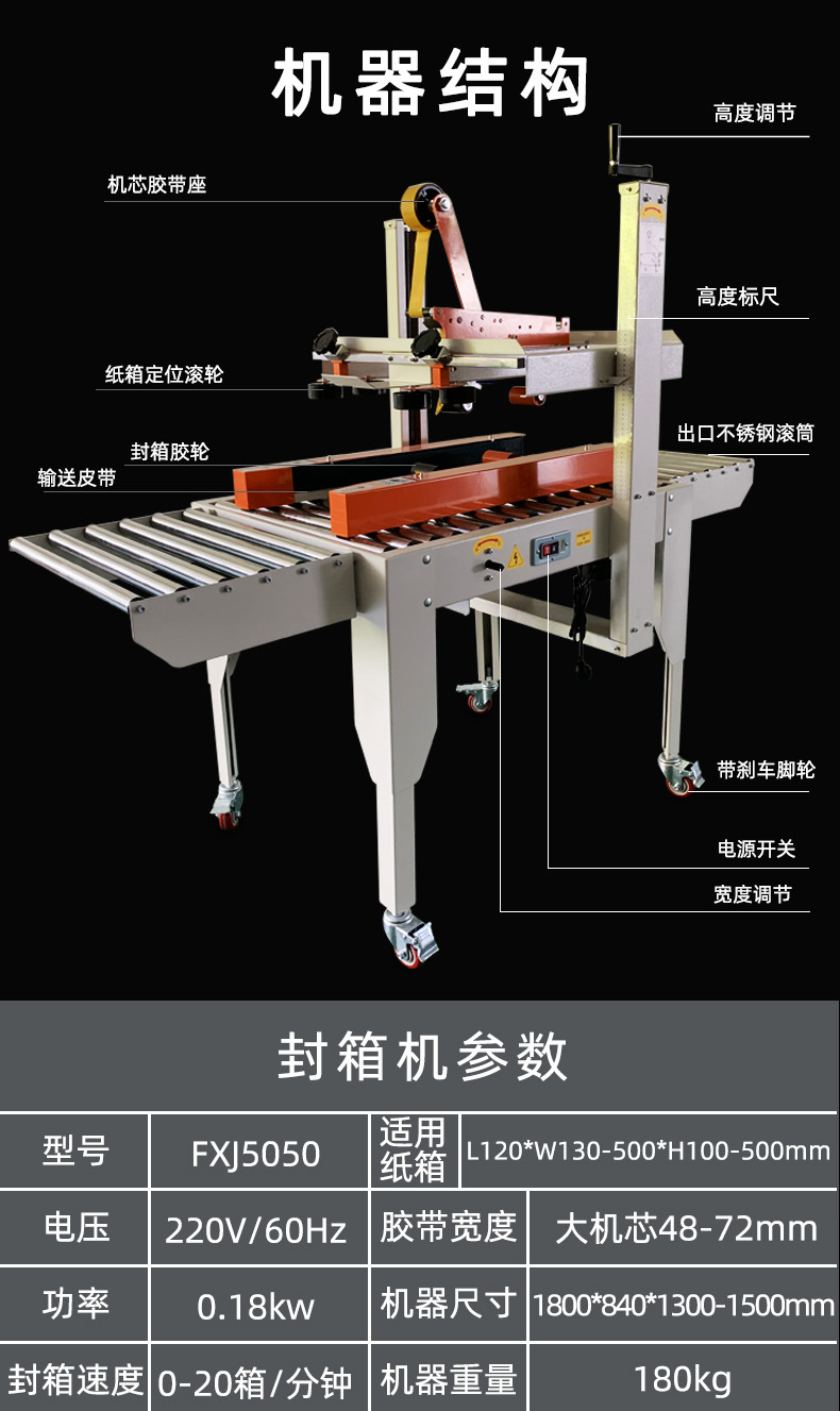 為您介紹一款功能強大、操作簡便的封箱機。首先,這款封箱機采用了先進的自動控制技術(shù),只需通過操作面板上的按鈕,即可實現(xiàn)封箱動作,無需繁瑣的操作步驟。同時,該封箱機還具備多種封口方式,如熱熔封口、膠帶封口等,滿足不同產(chǎn)品的需求。