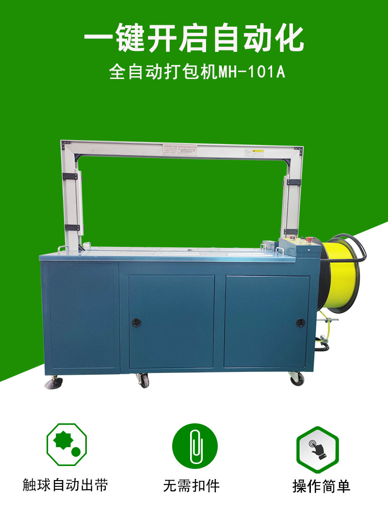 打包機(jī)又稱捆包機(jī)、打帶機(jī)或捆扎機(jī),是使用捆扎帶捆扎產(chǎn)品或包裝件,然后收緊并將兩端通過(guò)發(fā)熱燙頭熱融粘接方式結(jié)合。打包機(jī)的功能是加固包裝物品的,使物品在搬運(yùn)過(guò)程中、貯存中不因捆扎不牢而散落,同時(shí)還應(yīng)捆扎整齊美觀。