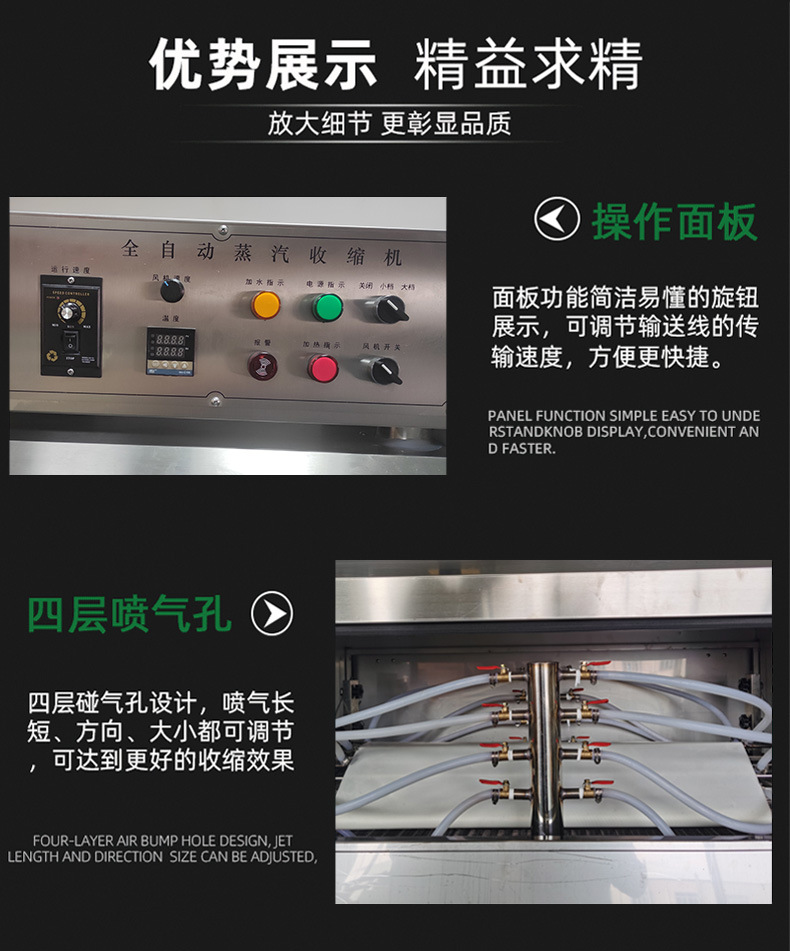 蒸汽式熱收縮機可以根據(jù)不同的生產(chǎn)速度來調節(jié)設備功率的大小,輸送帶采用無級調速,輸送速度可以任意調節(jié)。廣泛應用于大桶或小瓶裝礦泉水、純凈水;汽水和茶飲料等食品飲料行業(yè),以及化妝品、洗發(fā)水和五金電子等需要收縮膜包裝的場合使用