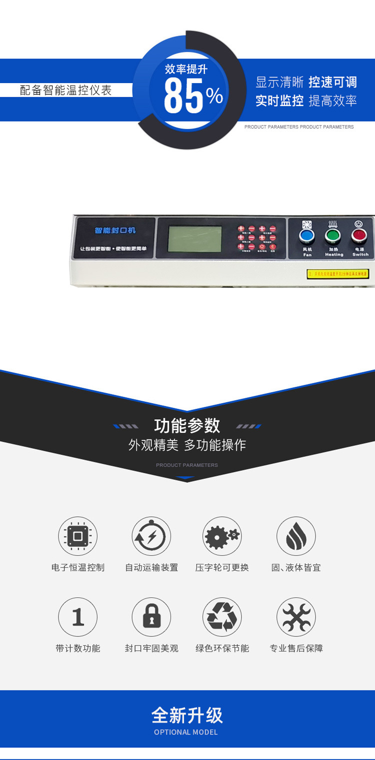 封口機是一種用于封閉包裝材料的機械設(shè)備。它主要用于食品、飲料、醫(yī)藥、化妝品等行業(yè)的包裝過程中,將包裝材料進行封口,確保產(chǎn)品的密封性和保鮮性