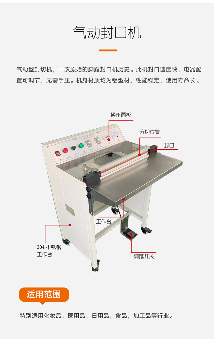 封口機是一種用于封閉包裝材料的機械設備。它主要用于食品、飲料、醫(yī)藥、化妝品等行業(yè)的包裝過程中,將包裝材料進行封口,確保產品的密封性和保鮮性。