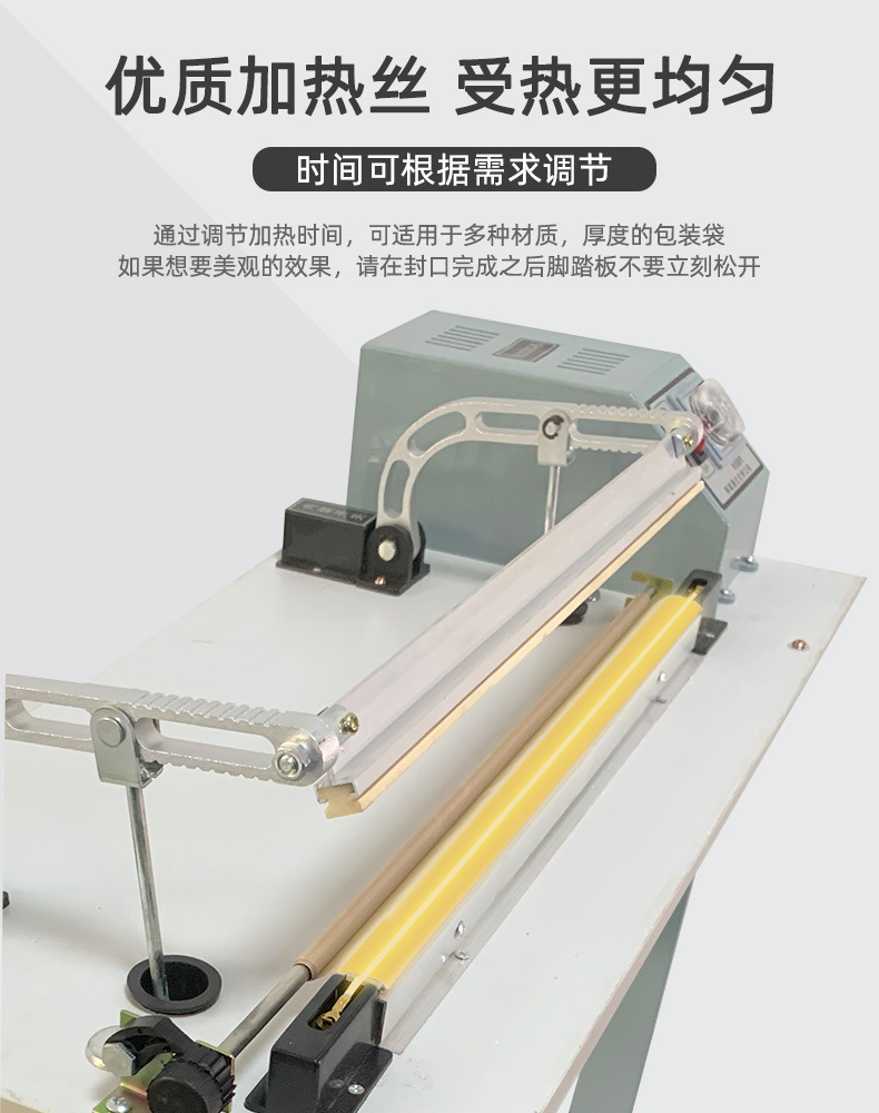 腳踏封口機適用于各種塑料薄膜、?復(fù)合薄膜及鋁塑薄膜的封合。?這種封口機因其高效、?簡單操作和廣泛的應(yīng)用領(lǐng)域,?被廣泛應(yīng)用于食品、?醫(yī)藥、?五金等多個行業(yè)。?